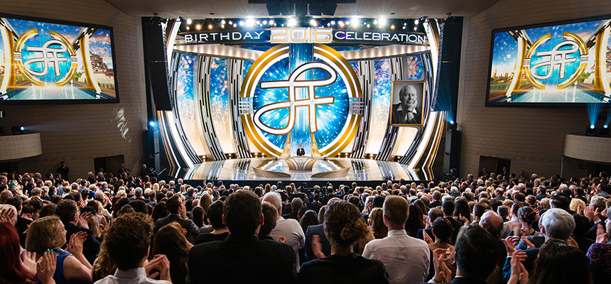 Det hele fandt sted den 12. og 13. marts i Scientologys åndelige hovedstad, Flag Landbasen i Clearwater, Florida – en fejring af Hubbards 105-års fødselsdag, det største brag af en årsdag nogensinde. Tusinder af scientologer fra hele verden blev fortryllet af historier om deres grundlæggers skelsættende eventyr, fantastisk underholdning, et spektakulært bal, en masse sjov – og som den røde tråd gennem det hele lå Scientologys mission at frigøre menneskers sind og sjæl og at udbrede løsninger på de ulykker, civilisationen står over for.