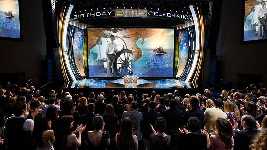 ”I aften ærer vi LRH”, sagde David Miscavige, bestyrelsesformanden for Religious Technology Center. ”Hans liv, hans værk, hans historie og hans arv. Og først og fremmest manden selv. Så selvom han er med os hver dag, på hver side af hver bog, i hvert foredrag eller på hvert trin af hans Bro til Fuldkommen Frihed, ja, så rykker vi endnu mere sammen i aften, hvor vi fejrer LRH’s arv og en strategi, der kan gøre hele menneskeheden fri.”