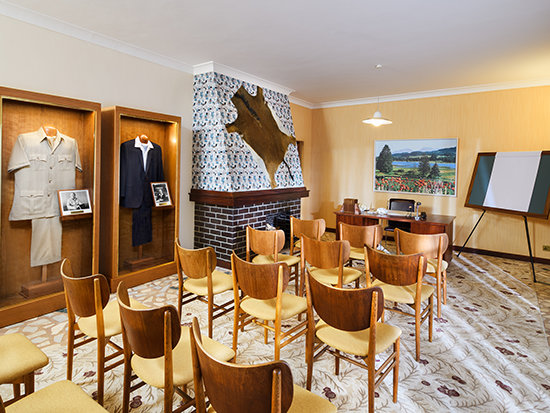 Nu er stedet fuldstændig restaureret og står nøjagtig som dengang – selv med de Chippendale-stole i mahogni hvor LRH sad under de første af stiftelsens møder.