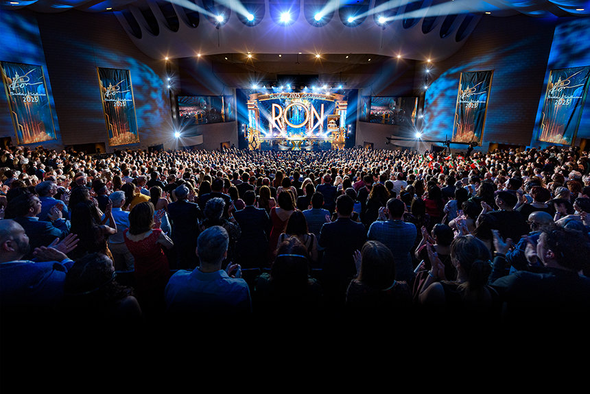 “Der er stadig ét punkt tilbage på aftenens program. Det er nu tid til at træde gennem spejlet og overveje hvad fremtiden har i vente”, sagde han. Og for de tusinder af deltagere var det der fulgte, en uventet, uforglemmelig og ubestridelig afsløring: en betagende forsmag på den fremtidige L. Ron Hubbard Hall – et mesterværk der er bestemt til at krone Flags campus.