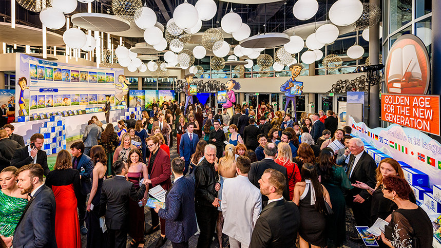 “Og nu kommer vi til det kulminerende øjeblik i denne Fødselsdagsevent,” sagde Mr. Miscavige. “For i aften markerer begyndelsen på endnu en Guldalder.” Efter at have lagt grundlaget for Scientologys Guldaldre for Viden, Teknologi og Administration rettede han blikket mod det der var tilbage som det næste skridt fremad. Med det afslørede han noget uden fortilfælde: Scientology Børnebøger der præsenterer de grundlæggende principper i Scientology – fuldt illustreret – og som levendegør hvert princip for den nye generation.