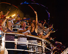 Først var der en aften helliget til selve det royale Freewinds. Og på dette 30. år kan hendes mandskab bryste sig med en optegnelse, der er uforlignelig i Caribien, med over 5.000 år med sømandserfaring og alt i alt mere end 380.000 sømil – hvad der svarer til hele verden rundt næsten 18 gange.