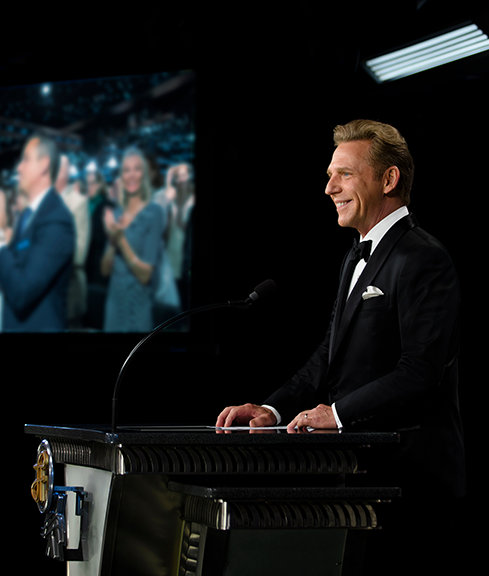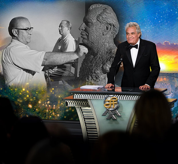 ”I skal til at høre en redegørelse fra LRH, der forsvarede menneskerettigheder ... og husk, hvad der dengang var på linjen, er ikke mindre på linjen i dag,” sagde David Miscavige, idet han introducerede den længe ventede biografiske præsentation.