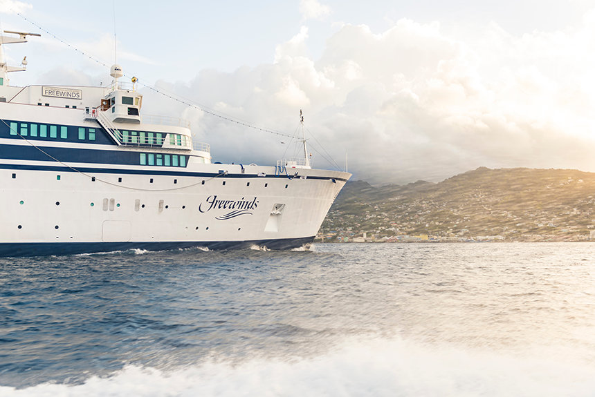 Ordet Caribien minder øjeblikkeligt en om de statelige krydstogtskibe, der i ro og mag rejser fra havn til havn med festglade folk på ferier, der nyder de tropiske øer, det smukke sceneri og calypsomusik. Men mens Freewinds helt bestemt deler funktioner med andre luksusskibe, inklusive et fem-stjernet køkken, smukt indrettede kahytter, klassiske krydstogtskibes elegance og passagerer, der uden tvivl nyder deres vestindiske udflugt, stopper enhver anden sammenligning her.