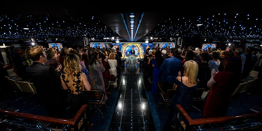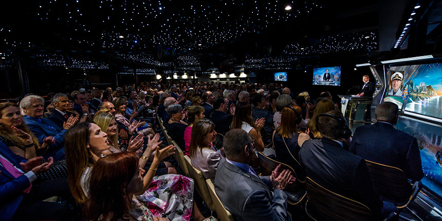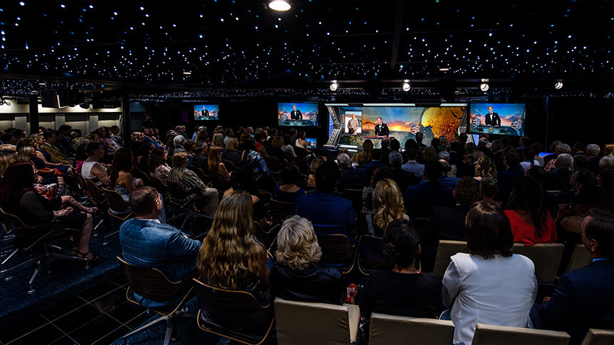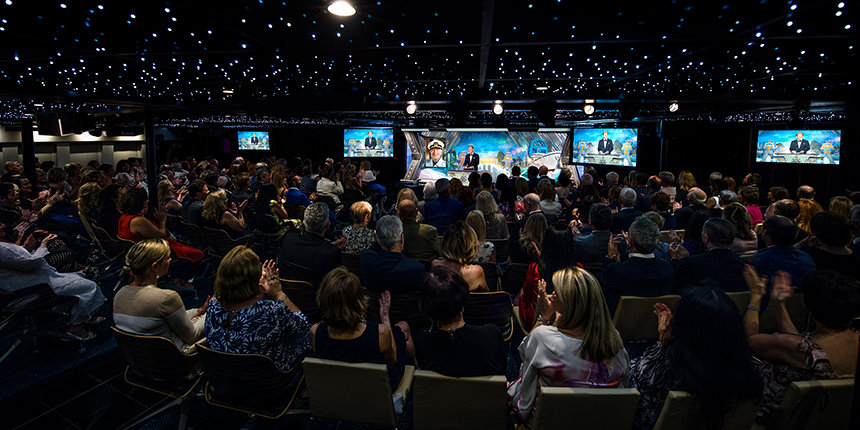 Og sådan lancerede David Miscavige en uge pointeret med betagende aften-eventer og orienteringer, der omhandler arven af Freewinds’ bedrifter ved hendes perleårsdag og så meget mere.