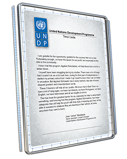 - Og til sidst, gennem IAS-støttede programmer rettet mod omfattende social støtte med Vejen til lykke, at genoprette en broderskabets ånd over hele Europas hovedstad i Bruxelles, Applied Scholastics udstrækker en livline til at kunne læse og skrive til landsbyer i Østtimor i det sydlige Stillehav, og Narconons rehabilitering af stofmisbrugere baner vejen for succes med rehabilitering fra stoffer over hele staten i Florida.