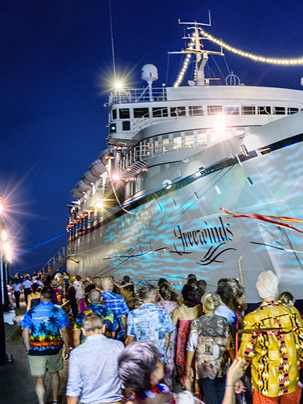 Så som en frisk brise, der kommer igennem Basseterre-havnen lørdag aften den 15. juni, og hundredvis af lokale og notabiliteter siger farvel til alle om bord, kaster Freewinds los for at begive sig ud på en uforglemmelig rejse.