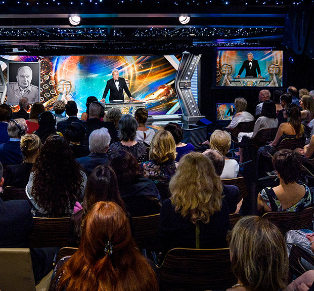 Næste aften fik gæsterne en fascinerende præsentation til ære for L. Ron Hubbard – forfatteren. Det var en aften, hvor Dan Sherman, LRH’s levnedsskildrer, underholdt publikum med uddrag af L. Ron Hubbards skriftlige refleksioner og personlige korrespondance med spirende forfattere gennem 1930’erne og ’40’erne.