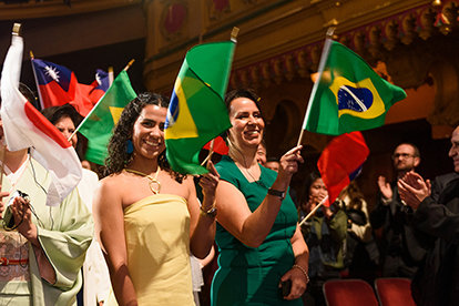 Jubel runger gennem auditoriet mens Nytårsfejringen præsenterer den ene bedrift efter den anden.