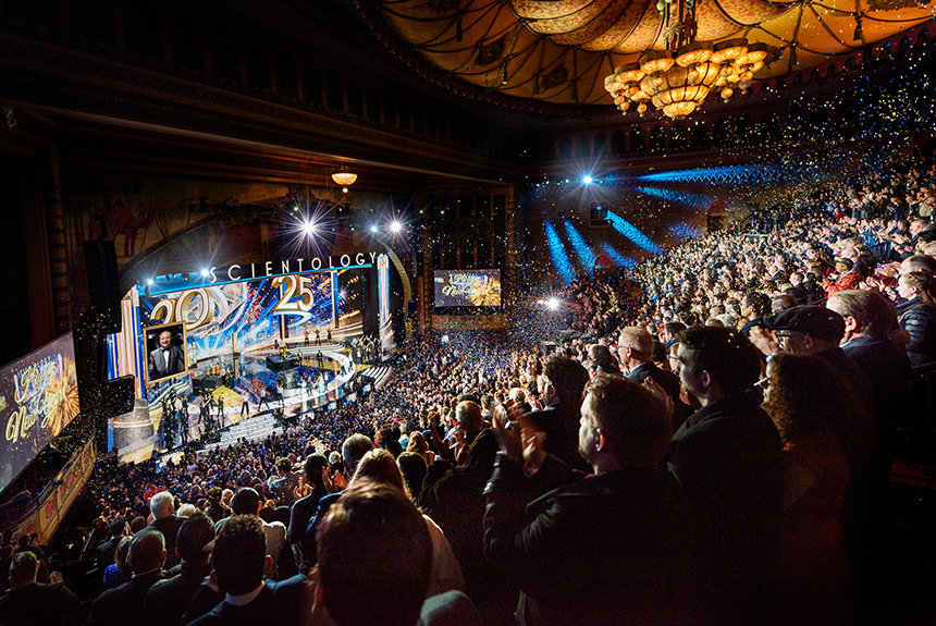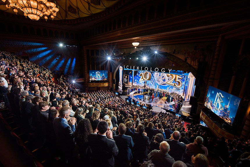 Storheden i Los Angeles’ Shrine Auditorium danner den perfekte baggrund idet over 6 500 samles for at skyde det nye år ind i Scientology stil.
