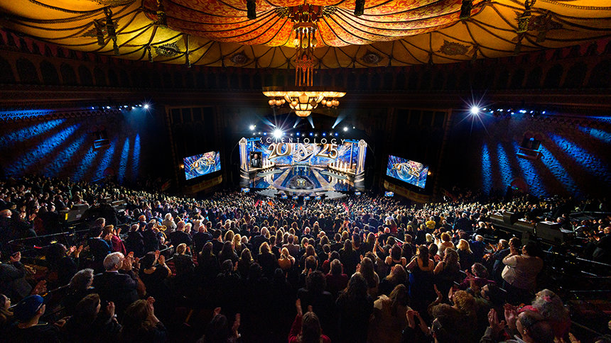 Det er alt hvad et imponerende nytårsarrangement i Los Angeles’ centrum bør være – en blændende blanding af elegance, energi og forventning. Den formelle påklædning. Den ikoniske lokalitet. Den forventningsfulde summen. Alt dette dannede rammen for en uforglemmelig aften mens mere end 6 500 deltagere strømmede ind i Shrine Auditoriet.