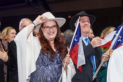 “Der er én sidste historie som venter på at blive fortalt,” fortsatte Mr. Miscavige inden Shrine brød ud i en bølge af jubel da han afslørede den kommende Ideelle Org i Puerto Rico. Salsamusik løftede stemningen da en filmisk forhåndsvisning af den blændende nye bygning i hjertet af San Juan udløste en bølge af puertoricanske flag i auditoriet. Den historiske indvielse der markerer den første Ideelle Org i Caribien, vil finde sted i løbet af de kommende uger.