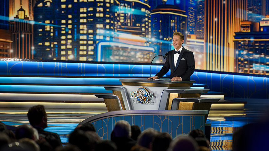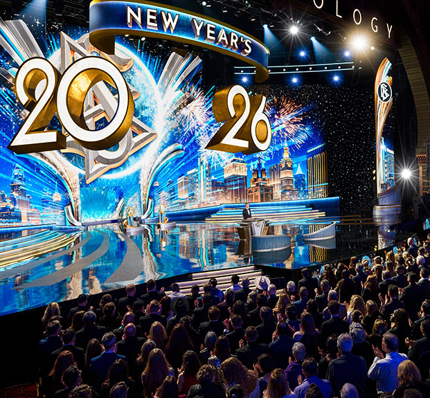 Aftenen begynder at tage fart mens Mr. David Miscavige, den kirkelige leder af Scientology religionen, træder ind i rampelyset, og Nytårsfejringen for 2026 begynder for alvor.