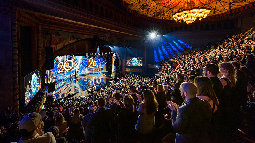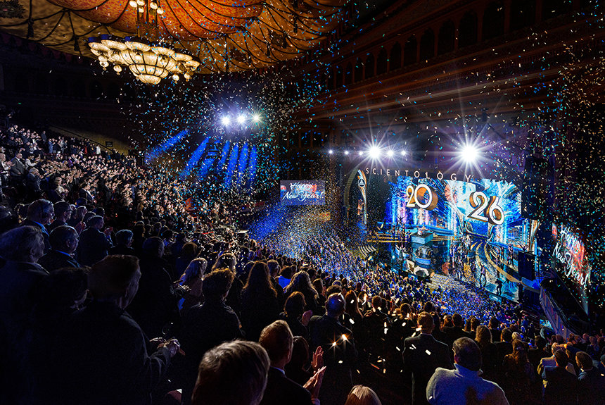 Mere end 6 500 deltagere forvandler auditoriet til en episk fest mens Nytårsfejringen går i gang med et umiskendeligt Scientology momentum.