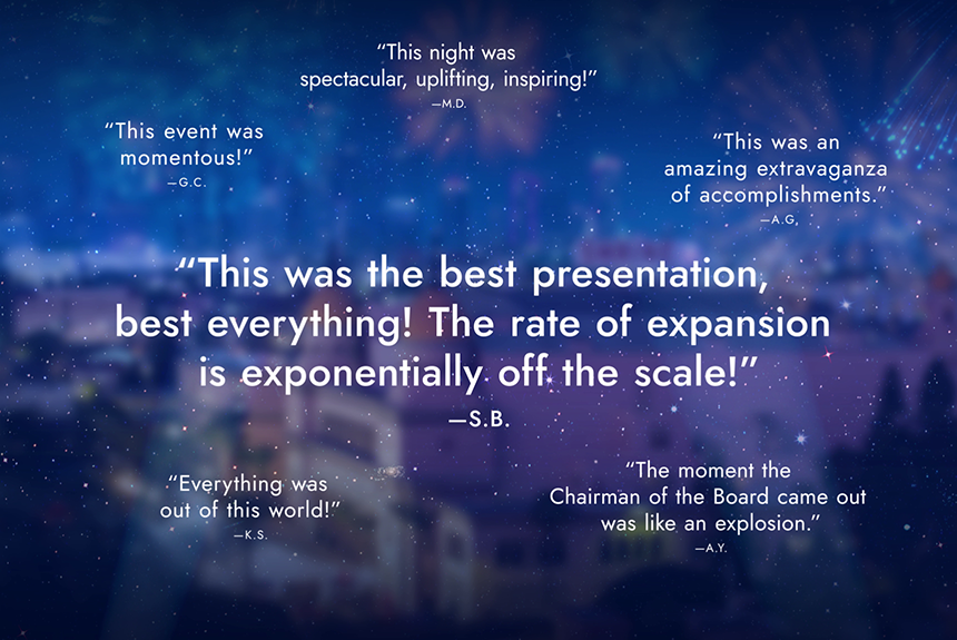 I takt med at det nye år nærmer sig, kommer den spændende aften til en rørende afslutning med en inspirerende grand finale da Mr. Miscavige leverer sin afsluttende besked.