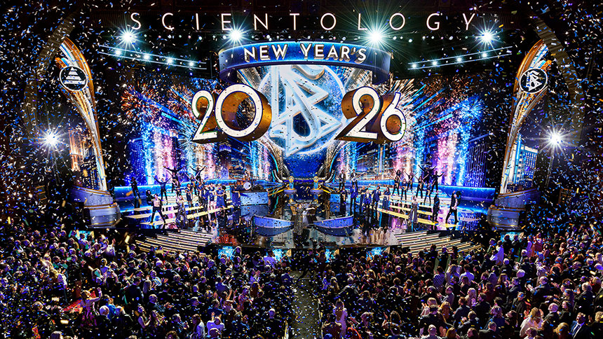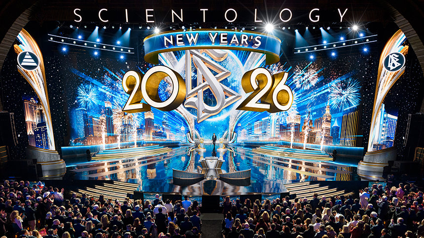“For det meste af verden er Nytår noget de venter på. De tæller sekunderne ned, og ser på uret som om det er tiden der fortæller dem hvornår livet begynder igen,” sagde Mr. David Miscavige, den kirkelige leder af Scientology religionen. “Men vi har aldrig oplevet tiden på den måde. Så mens resten af planeten måske stadig tager det roligt, er vi her af helt andre grunde: for at se hvad der sker når et helt år med Scientology bedrifter slippes løs på én gang.”