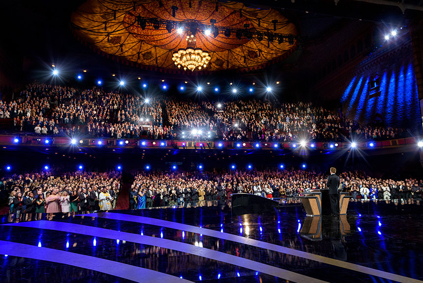 Fra starten af var aftenen præget af de særkender der kendetegner en Scientology Nytårsfejring – elegance, forventning og en følelse af formål. Iført formel aftenbeklædning fyldte mere end 6 500 gæster den historiske sal for at hylde de betydningsfulde bedrifter i 2025, med blikket rettet mod en uendelig horisont der åbnede sig foran dem.