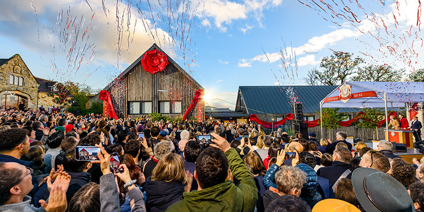 Sådan var det, at bare to dage senere, søndag den 5. november 2023, gav tordnende jubel genlyd hen over Saint Hills område, da det første af båndene faldt, til minde om åbningen af Storbritanniens stabsforbedringscenter. Den splinternye 1.850 m² store bygning er designet til at give Scientology uddannelse og vejledning til Saint Hills voksende antal ansatte.