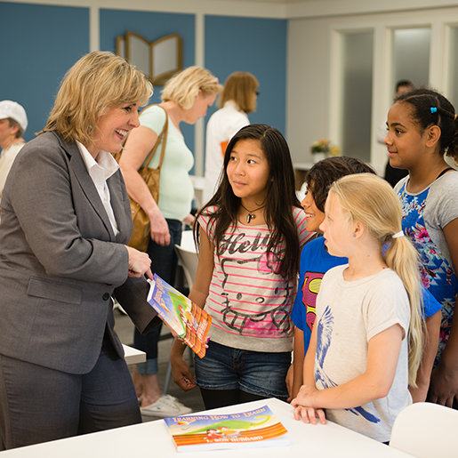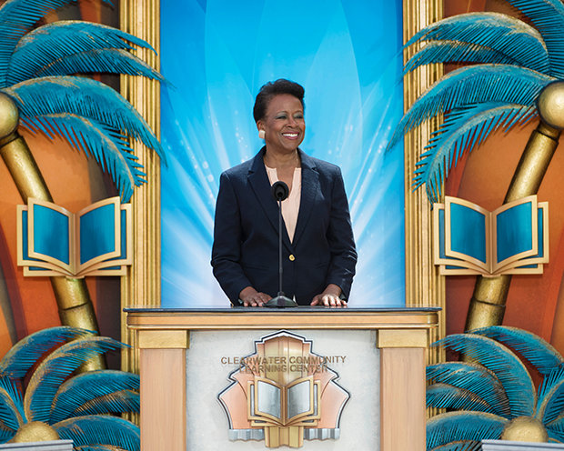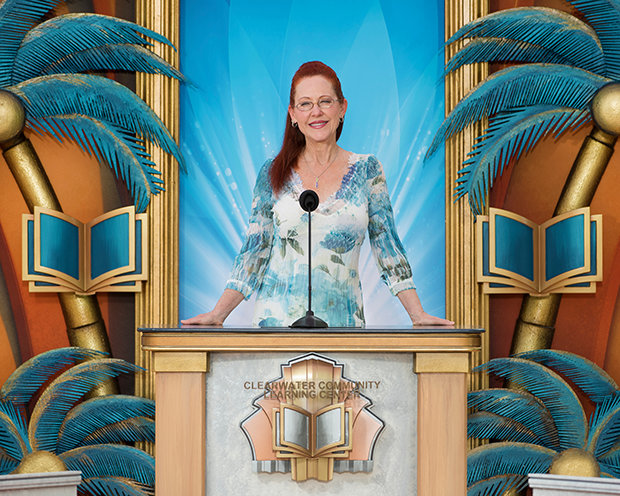 ”Vi er stolte over at kunne åbne dette center for at bringe en brugbar studieteknologi til alle børn og familier i dette lokalsamfund,” sagde Pat Harney, eventens værtinde og direktør for offentlige anliggender for Scientology kirken i Clearwater, før hun introducerede dagens første taler, undervisningscenterets administrerende direktør, Holly Haggerty.